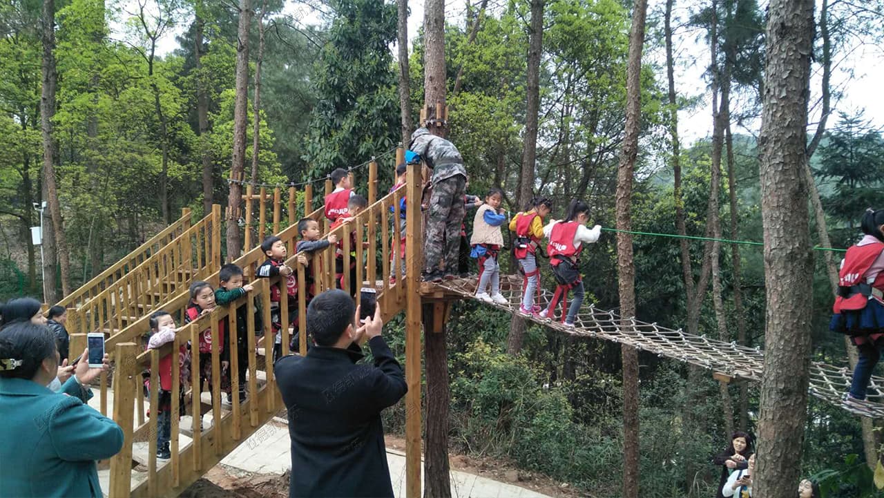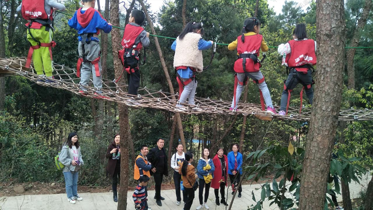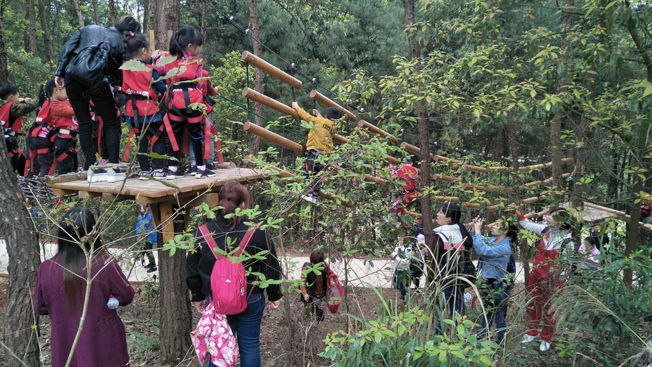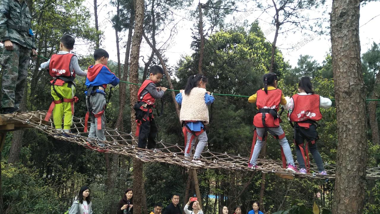 叢林探險(xiǎn)項(xiàng)目可以鍛煉孩子的四肢協(xié)調(diào)能力、平衡性、肌肉力度、靈活性,還能鍛煉他們的意志力和克服困難的勇氣,孩子們會(huì)特別興奮。