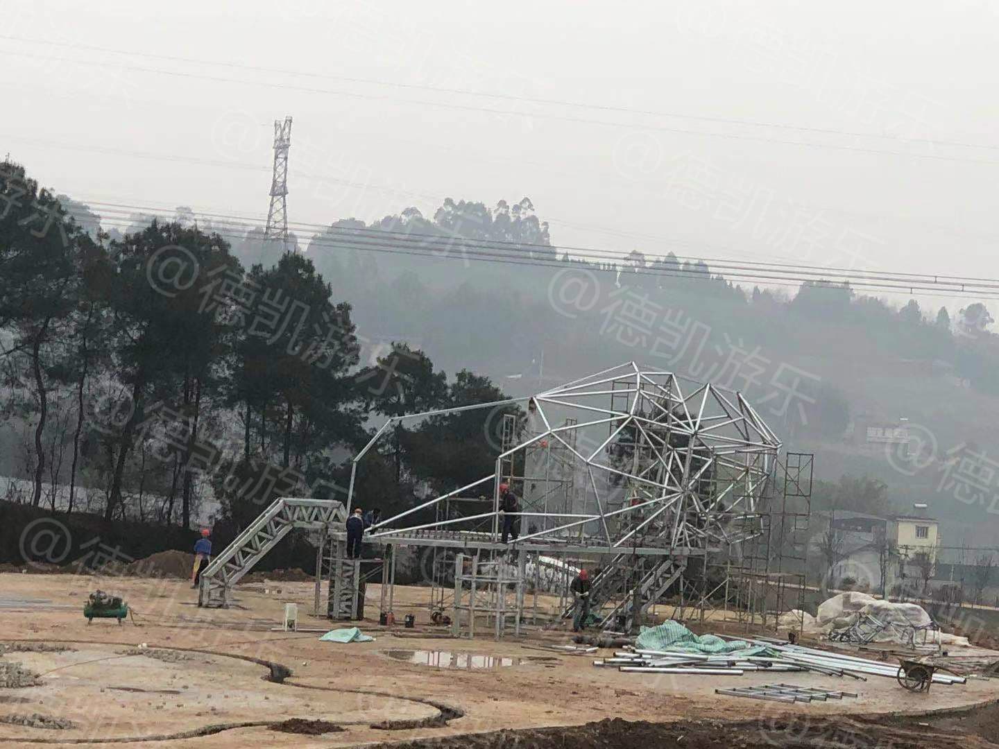 年關(guān)將至,位于重慶景區(qū)公園游樂設(shè)施有序安裝中。