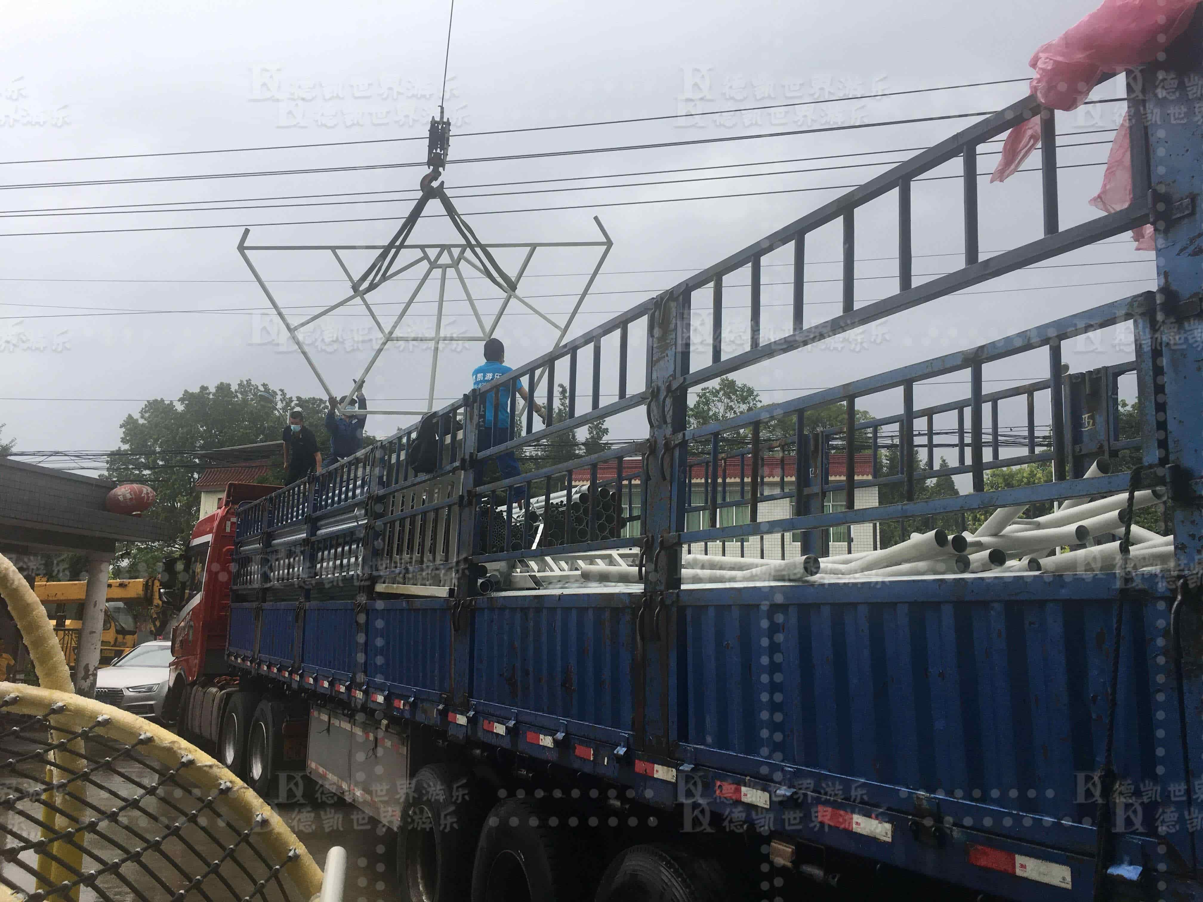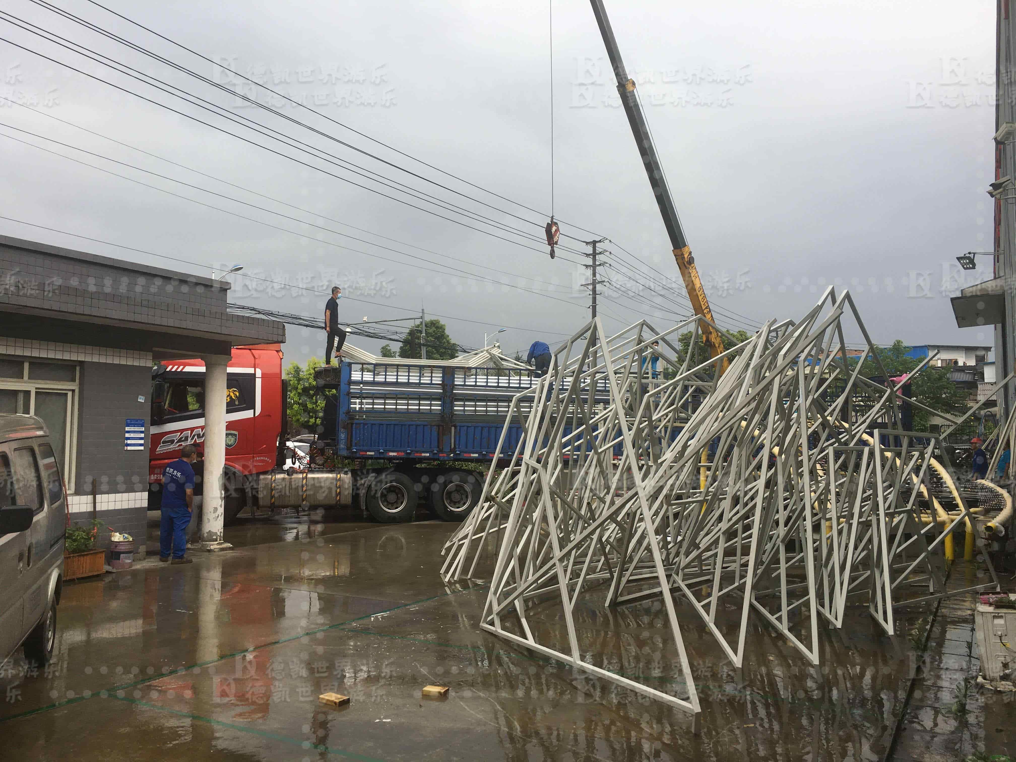 發(fā)往山東青州南陽王府樂園設(shè)施出庫了,如期完成生產(chǎn)任務(wù),現(xiàn)部分設(shè)施開始裝車運(yùn)往山東青州項(xiàng)目地。