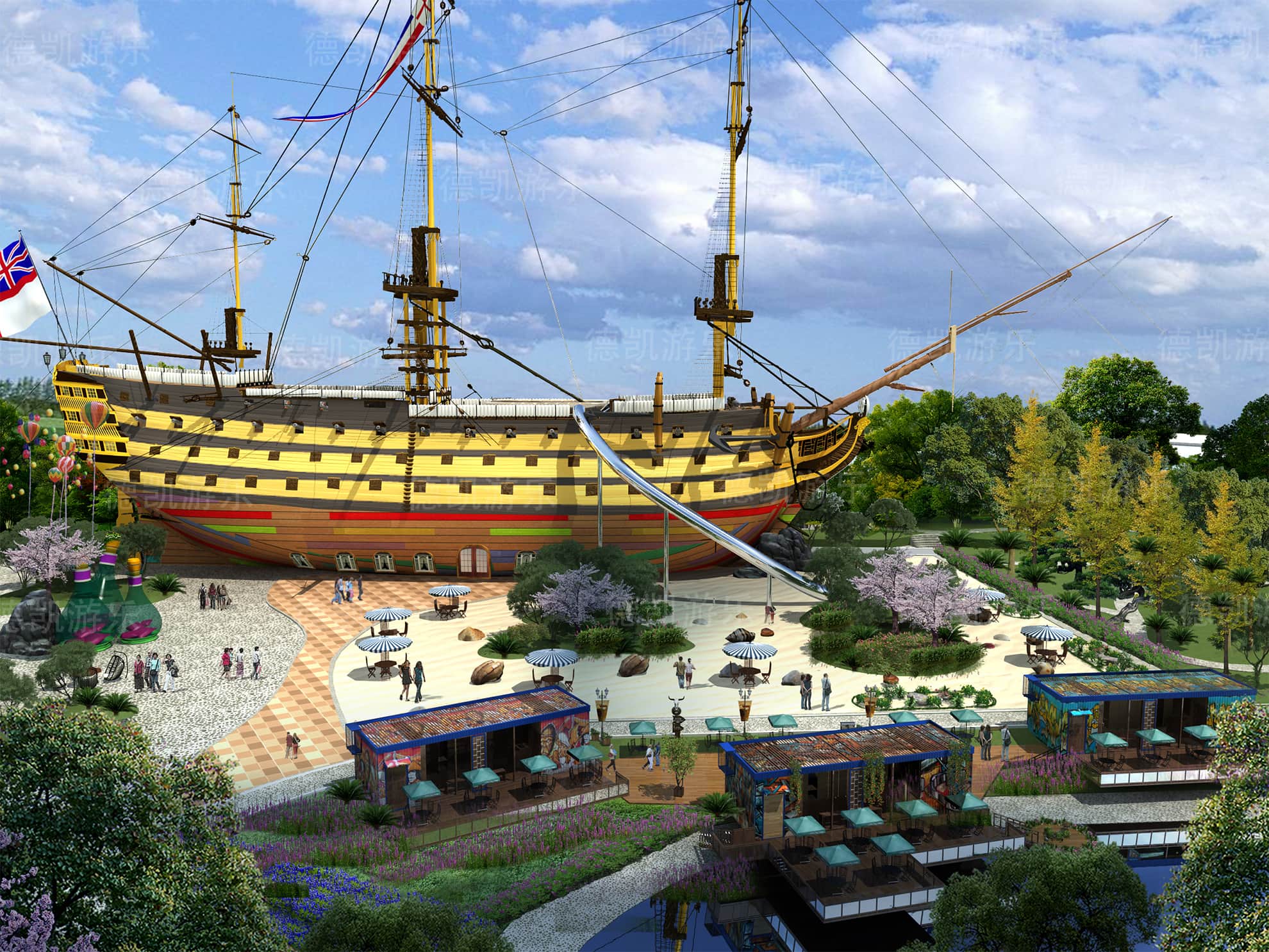 這是整個園子里面壯觀的游樂設備,它就像真正的戰(zhàn)艦一樣那么有氣勢。不過作為游樂設備,對孩子們的包容性還是很大的,它在船艙底部設置了一扇大門,三扇小門,方便孩子和監(jiān)護人上去。因為外部殼的保護,里面的具體場景在外面并不能看見,隱約可以看見的是船至少5層,還有就是夾板上設置了瞭望臺,不過因為探險的危險性指數(shù)有點高,因此是限制年齡的。就這個園子而已,戰(zhàn)艦可能高度最高,氣勢雄偉的了,不過孩子們能夠玩耍的高度就不是最高的了。園子里面任何的游樂設備都沒有戰(zhàn)艦對他們的誘惑力大,這里不知道承載了多少孩子的英雄夢。