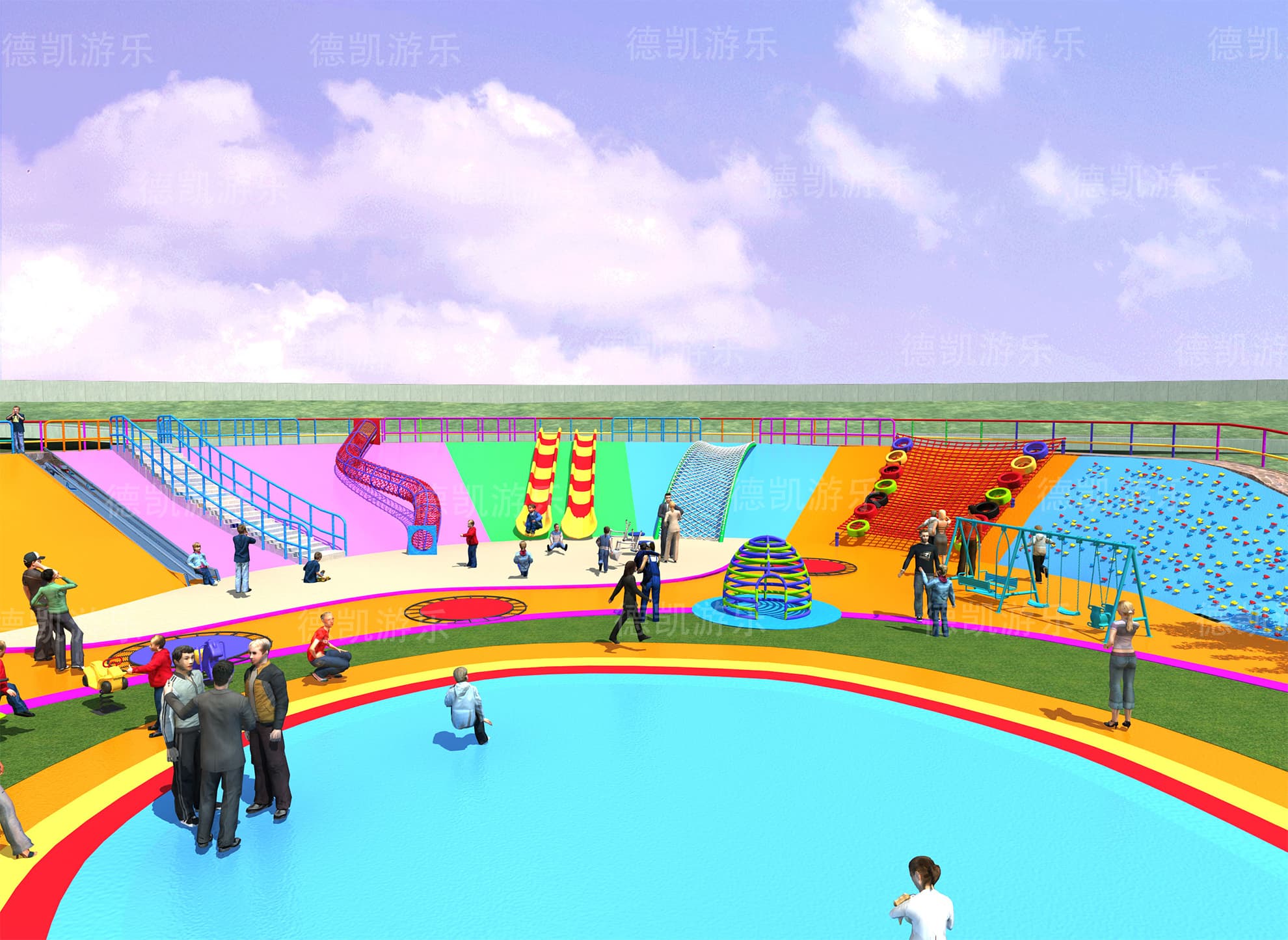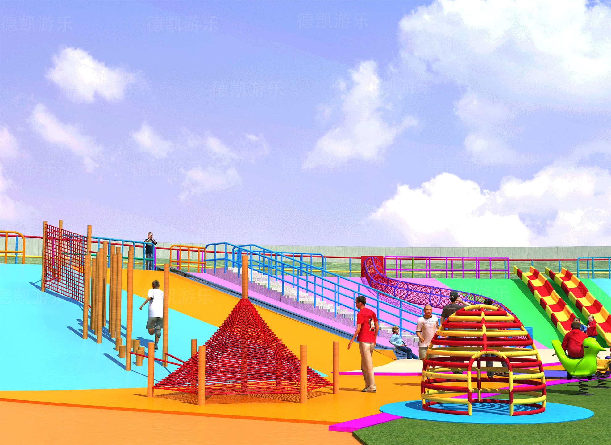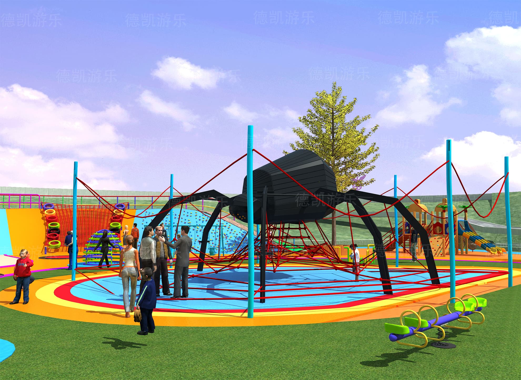 在總體效果圖中,我們大致可以看見這個游樂園的主要游樂設備:主體七彩滑梯、勇攀高峰、鉆網(wǎng)、拓展組合、地形游樂、蜘蛛游樂,且每個設備都有各自的區(qū)域范圍,構成了這個完整的游樂園。游樂園也周圍環(huán)境相融合,融入到這座城市當中,完善著城市的基礎功能。