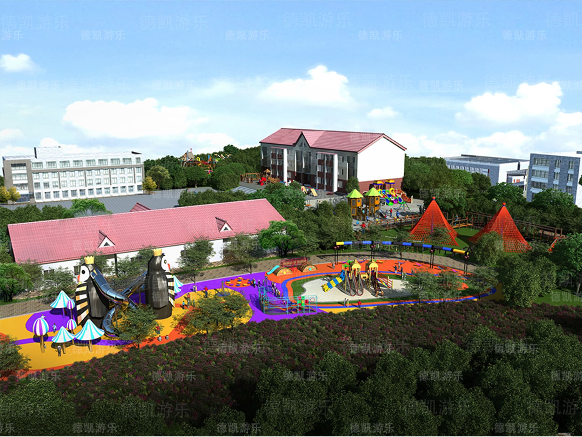對(duì)于這個(gè)園子而言,它是屬于學(xué)校配套了,它里面的設(shè)備對(duì)孩子們的年齡段就沒(méi)有那么大了,年齡段應(yīng)該在2-15為主,可以包括幼兒園、小學(xué)、初中。在下課之后,游樂(lè)區(qū)域會(huì)擠滿了孩子們的身影,他們?cè)谶@里追逐、打鬧,玩耍,爭(zhēng)分奪秒地過(guò)著下課時(shí)間。在這個(gè)效果圖里面,完全可以看見(jiàn)企鵝滑梯、組合滑梯、城堡滑梯、勇攀高峰等比較大型的游樂(lè)設(shè)備,從周圍環(huán)境可以清晰的看見(jiàn)許多的教學(xué)樓,因此這個(gè)學(xué)校的孩子數(shù)量就會(huì)相對(duì)來(lái)說(shuō)比較的多,這些游樂(lè)設(shè)備能夠得到很好的利用。